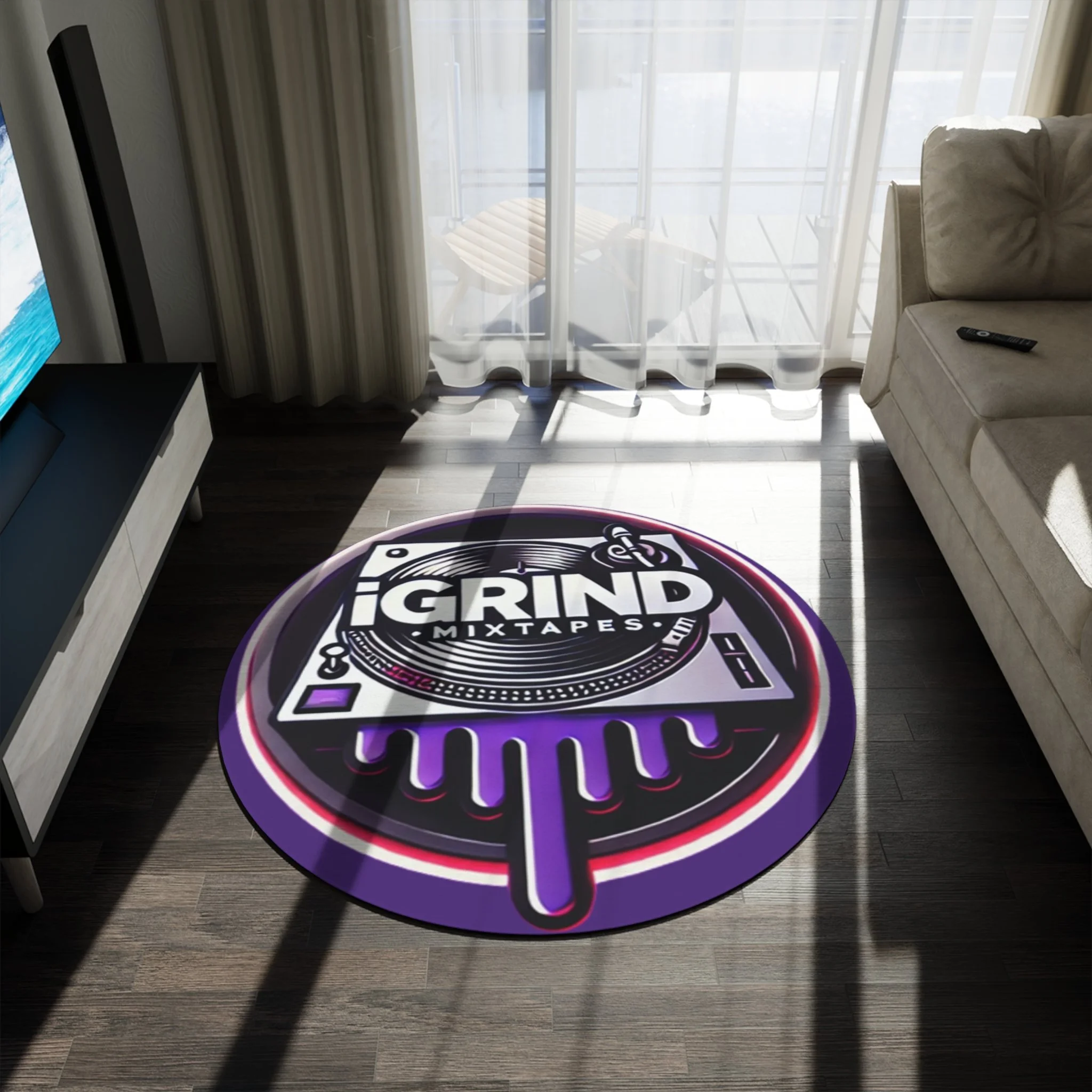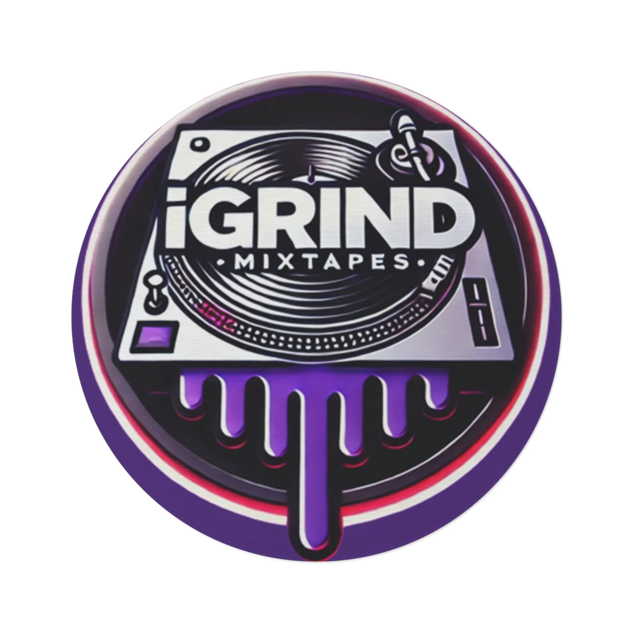 iGrind Mixtapes Round Rug — DJ Turntable Logo Floor Mat (Purple Drip)